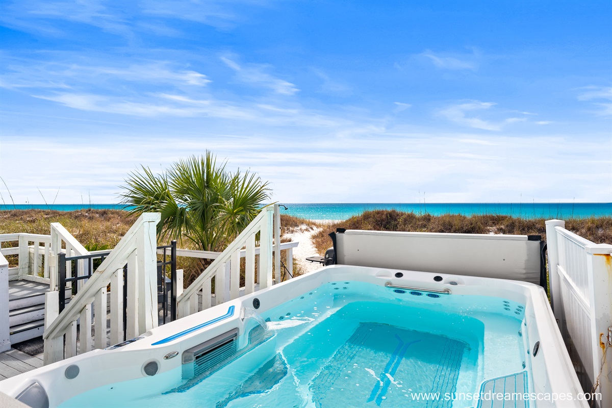 Relax and recharge in your own private, heated, SwimSpa (12'x7.5'). Enjoy the sound of the waves and beautiful Emerald Coast views while lounging in the warmed waters.